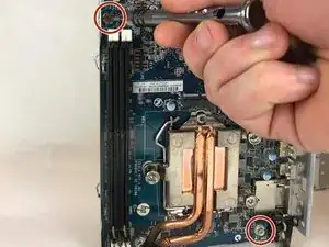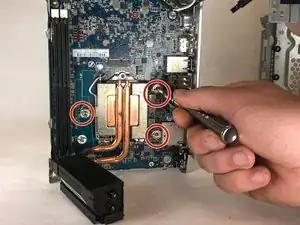 Снимите радиатор с материнской платы: отверткой Torx #15 выкрутите три винта 24 мм и аккуратно отведите радиатор от платы.