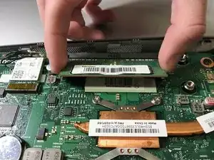 Осторожно приподнимите свободную сторону модуля памяти, затем выньте его из слота.