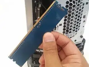 Снимите панель, чтобы открыть встроенные синие модули оперативной памяти.