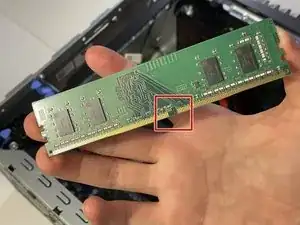 Выемка на модуле памяти расположена немного ближе к одной стороне планки, чем к другой. Сторона, к которой ближе выемка, является нижней стороной.