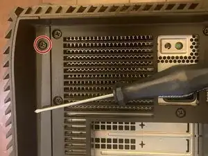 Используйте отвертку Phillips #0, чтобы удалить два винта на боковой панели вашего компьютера.