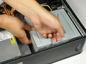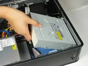 Поднимите вкладку, удерживающую оптический привод на месте.