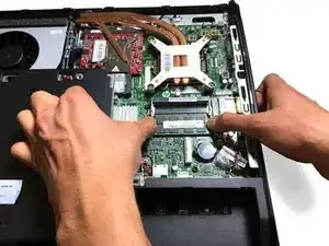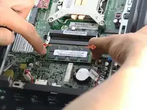 Отдалите два серебристых зажима, удерживающих оперативную память, друг от друга.