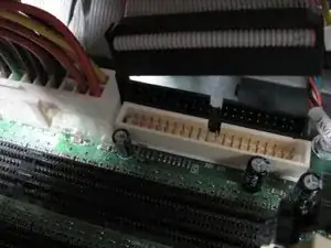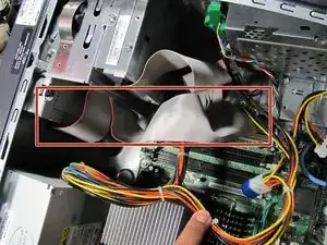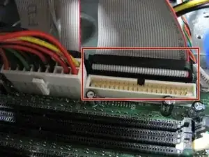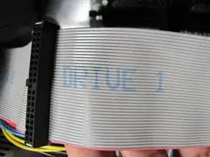 Возьмитесь за конец кабеля Привод 1, подключенный к материнской плате, и энергично потяните вверх, пока он не отсоединится.