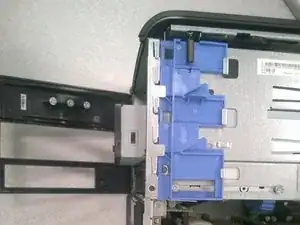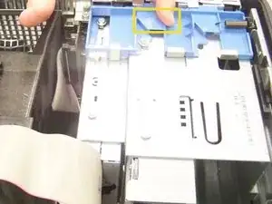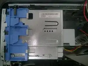 Чтобы извлечь оптический привод из отсека, сдвиньте привод к передней части компьютера.