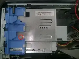 С помощью крестовой отвертки Phillips #1 открутите винт, соединяющий оптический привод с отсеком для привода.