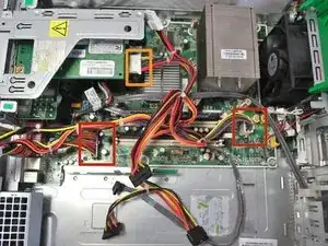 Снимите два кабеля с материнской платы, захватив их рукой и потянув вверх и наружу.