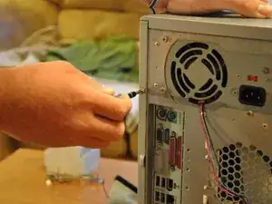 С помощью отвертки Phillips #0 открутите и удалите два винта (5 мм), которые крепят оставшуюся боковую панель к башне.