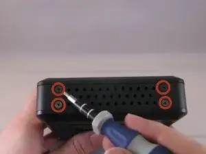 Открутите и снимите восемь винтов длиной 4 мм крестовой отверткой №0 (четыре сверху, четыре снизу) с верхней и нижней частей устройства.