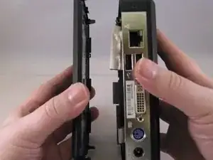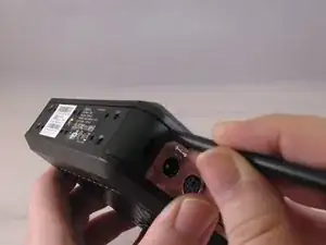 Проведите плоской стороной лопатки вдоль всей линии корпуса, начиная с задней части, где расположен разъём питания и небольшой винт.