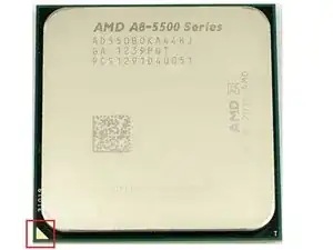 Возьмите новый процессор и совместите стрелки, отмеченные на фотографиях.
