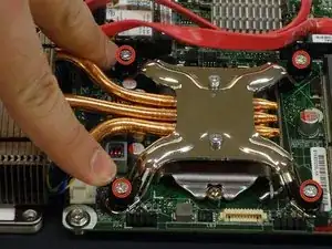 При помощи крестовой отвёртки #2 открутите четыре винта крепления радиатора охлаждения процессора (ЦП).