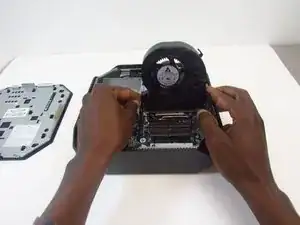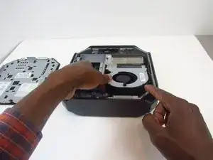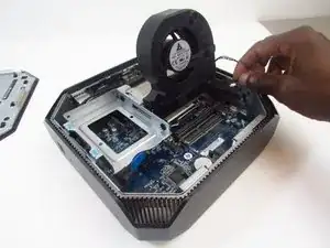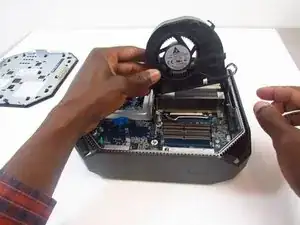 Снова откиньте вентилятор вверх и вытащите его.