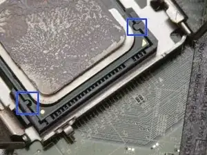 Убедитесь, что передняя и задняя части процессора совпадают с передней и задней сторонами разъёма. Неправильная установка процессора может привести к необратимому повреждению как материнской платы, так и самого процессора.