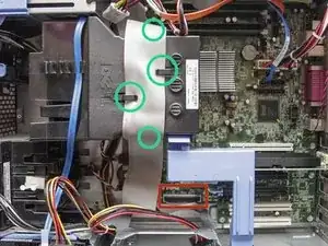 Извлеките два винта, расположенных вверху и внизу системы охлаждения, с помощью стандартной отвёртки с крестообразным наконечником.