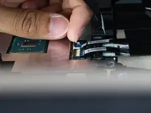 Поднимите пластиковые фиксирующие лепестки пальцем, которые удерживают оставшиеся три (3) ленточных кабеля.
