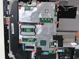 Используйте отвертку Phillips №1, чтобы выкрутить девять (9) винтов 3,2 мм с материнской платы.