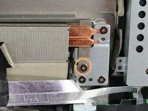 Используйте отвертку Phillips №1, чтобы выкрутить один (1) винт 4,8 мм непосредственно под медным каналом радиатора.