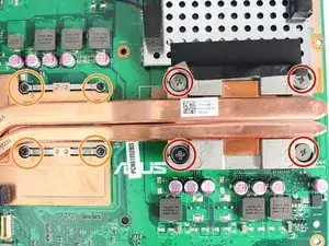 При повторном присоединении радиатора к плате затягивайте винты по чуть-чуть, в том же порядке, и переходите по кругу, пока все они не будут прикручены до плотного сопряжения.