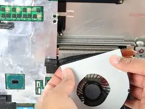 Отсоедините кабель, соединяющий вентилятор с материнской платой, вытянув кабель из гнезда.