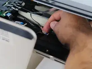 Загляните внутрь компьютера и найдите пять (5) кабелей, которые соединяют встроенные компоненты экрана (камера, микрофон и т.п.) с остальной частью компьютера.