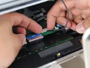 Снимите два антенных провода с карты WLAN, потянув вверх за коаксиальные разъемы.