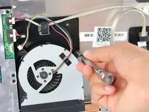 Используйте отвертку Phillips №0, чтобы выкрутить три (3) винта 4,8 мм из блока вентилятора.