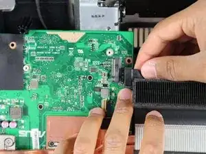 Поверните материнскую плату к себе, поддерживая радиатор, поворачивая его по нижнему краю.