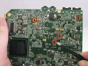 Удалите четыре винта Phillips #0 длиной 4 мм, которые крепят материнскую плату к корпусу.