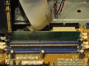 Найдите модуль оперативной памяти (отличается бежевыми фиксаторами).