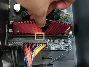 Надавите, чтобы защёлки по бокам зафиксировали модуль памяти.