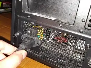Подключите кабель блока питания к розетке и к ПК.