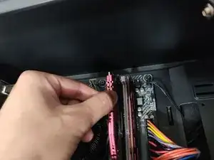 Нажмите на защёлки с каждой стороны планки оперативной памяти.