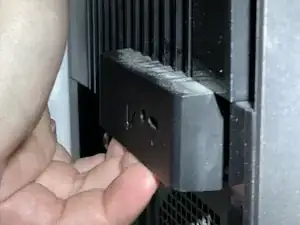 Поднимите черный зажим на задней панели ПК, чтобы открыть боковую крышку.