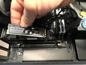 Установите новый накопитель SSD под углом 30–40 градусов.