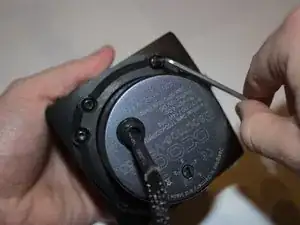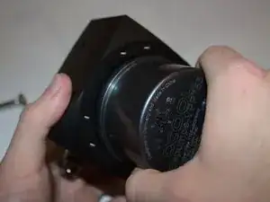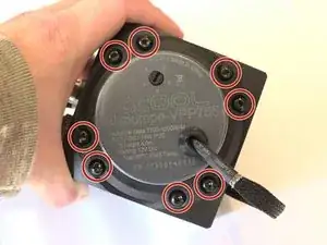 Отвинтите восемь шестигранных винтов М4 длиной 3,5 см, крепящих насос к оболочке.