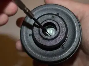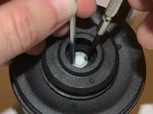 Снимите чёрную нижнюю упорную шайбу для завершения разборки.