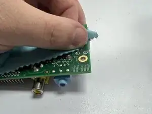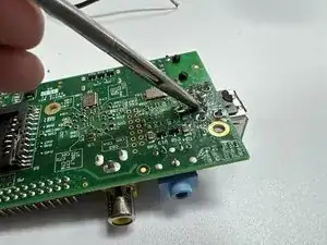 После того, как весь припой, удерживающий контакты, будет удален, аккуратно нагрейте каждый серебряный контакт. Используйте гемостаты или плоскогубцы, чтобы отсоединить меньшие контакты от платы.