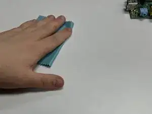 Очистите излишки флюса с печатной платы с помощью микрофибровой ткани.