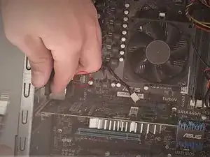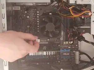 Отсоедините 3-контактный разъем вентилятора от 4-контактного разъема на материнской плате, аккуратно потянув за белый пластиковый разъем.