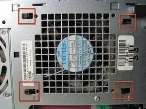 Удерживая защелку, посмотрите на внешней стороне корпуса, где находится вентилятор.