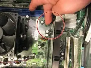 Найдите зажим, который фиксирует видеокарту на месте.