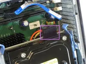 Отключите синий кабель, который соединяет жесткий диск с материнской платой.