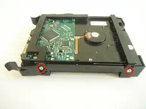 Отвинтите четыре винта диаметром 5 мм с обеих сторон жесткого диска с помощью отвертки Philips №1, затем извлеките жесткий диск из корпуса.