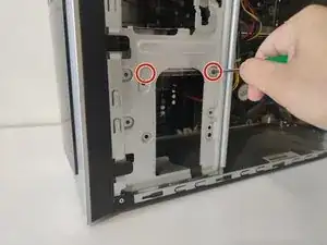 Поддержите жесткий диск одной рукой снизу, чтобы он не упал, затем с помощью крестовой отвертки Phillips #2 удалите два винта 2 мм, прикрепляющие жесткий диск к корпусу.