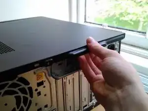 Для снятия боковой панели необходимо сначала открутить один винт.