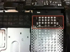 Удалите 4 винта с крестообразной головкой и снимите металлическую панель, закрывающую жесткий диск.