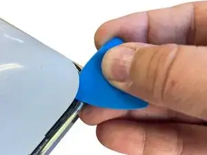 Аккуратно вставьте лопатку в щель между задней панелью и рамкой.