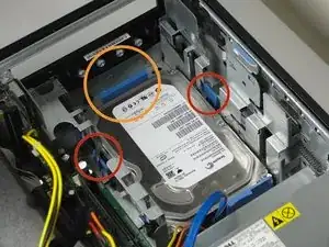 Вытяните оба пучка проводов, подключенных к жесткому диску.