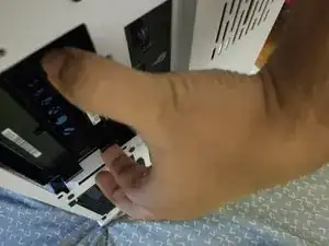 Сожмите нижний и верхний язычки и вытащите лоток жесткого диска из корпуса.
